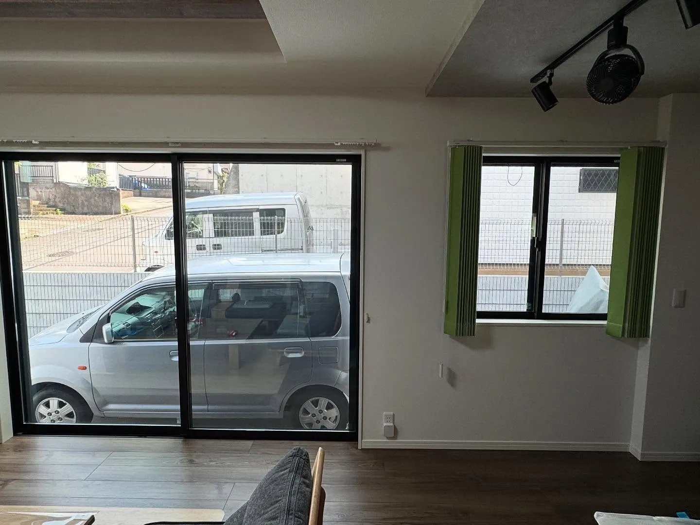 道路に面した窓ガラスは元々LOW-E+防犯ガラスが入っているそうですが、リビングどダイニングだけつうじょうのLOW-E複層ガラスのため防犯フィルムフィルムをお考えだったそうです。