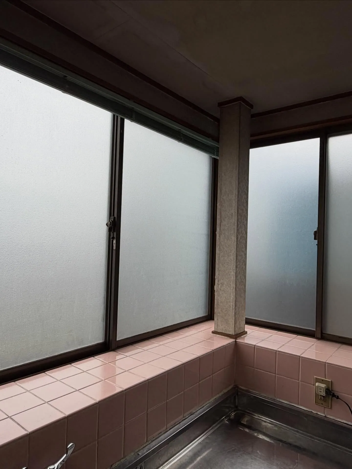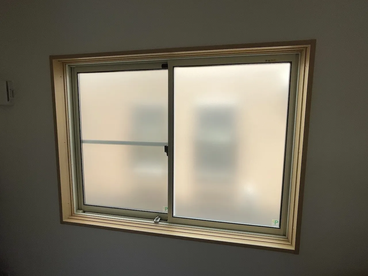 写真はキッチンの腰高サイズ引き違い窓です。こちらのお宅には玄関や階段、トイレ、納戸の凸凹ガラスへこのフィルムを施工しています。